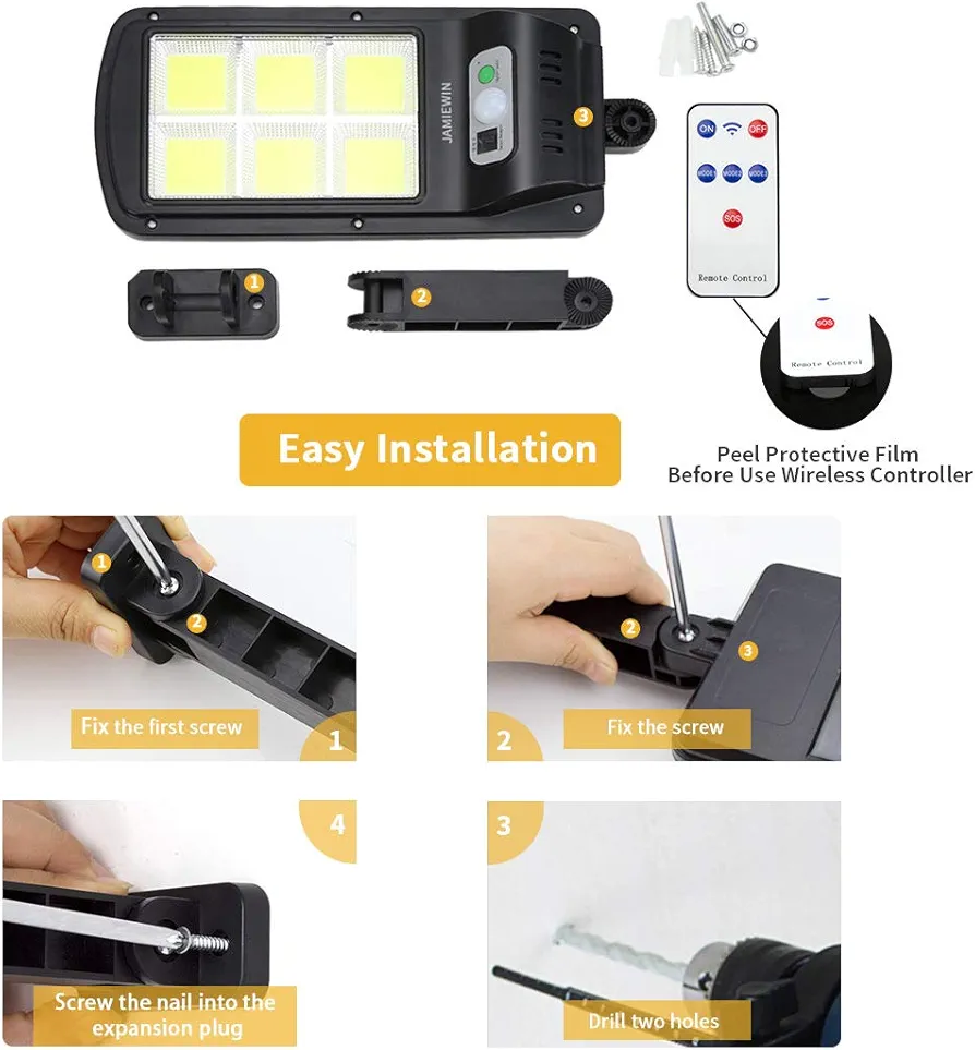 مصنوع من LEDات قوية بجودة عالية تغطي مساحة واسعة، ومع وظيفة التنبيه الحركي يشتغل الضوء بس لما حد يدخل نطاق الحساس في الليل،